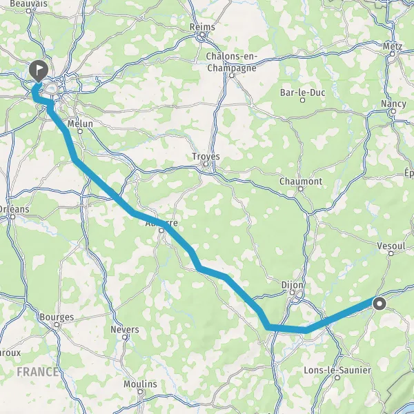 Prendre à droite et rejoindre A6. Continuer sur 293 kilomètres