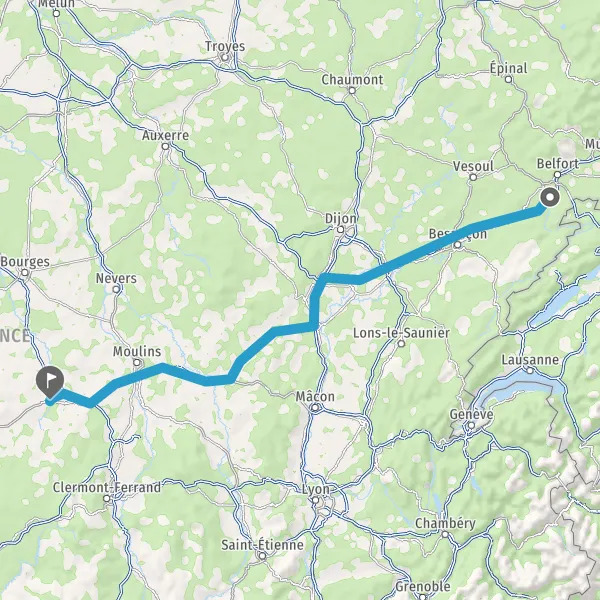 Prendre à droite et rejoindre A36 E60. Continuer sur 166 kilomètres