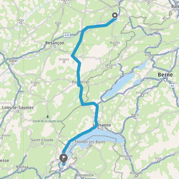 Prendre à droite et rejoindre A36 E60. Continuer sur 6,2 kilomètres