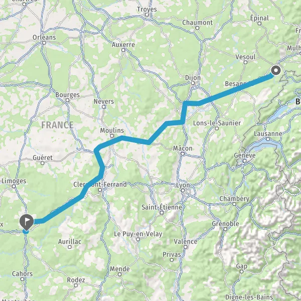 Prendre à droite et rejoindre A36 E60. Continuer sur 166 kilomètres