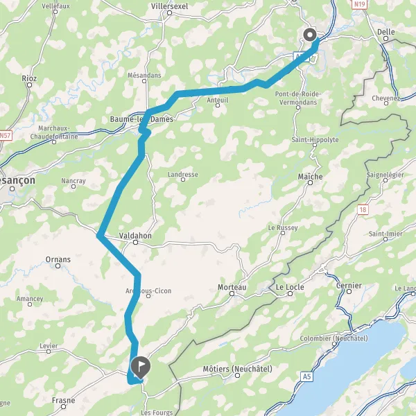 Au rond-point, prendre la 2ème sortie sur D438 (Rue de Mathay) et continuer sur 4,5 kilomètres