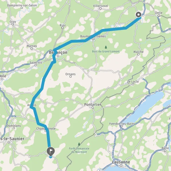 Prendre à droite et rejoindre A36 E60. Continuer sur 73 kilomètres