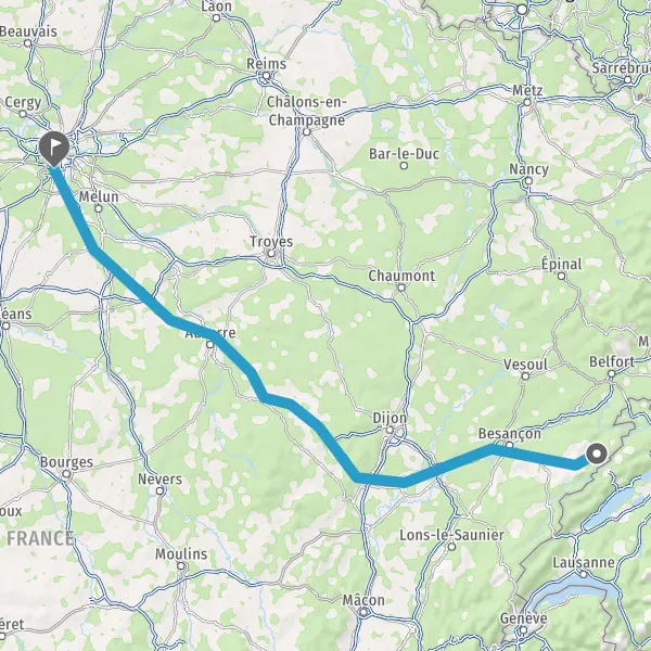 Prendre à droite et rejoindre D673 (Rue de Dole). Continuer sur 5,3 kilomètres