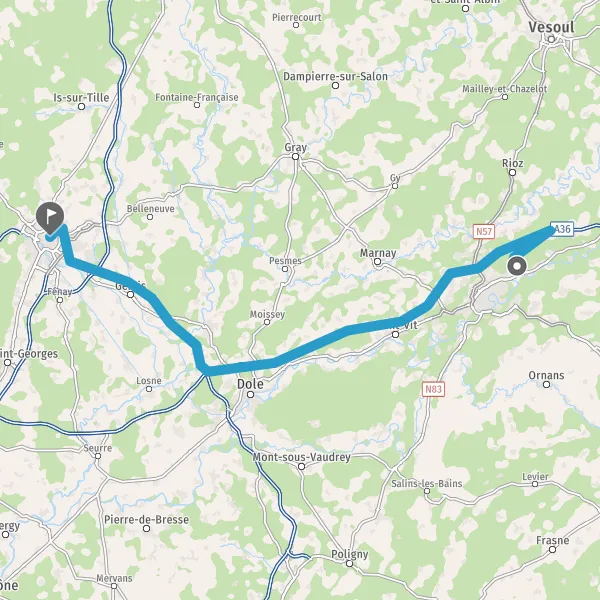 Prendre à droite et rejoindre N57 E23 (Rue de Vesoul). Continuer sur 1,7 kilomètre