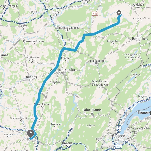 Prendre à gauche et rejoindre A39. Continuer sur 78 kilomètres