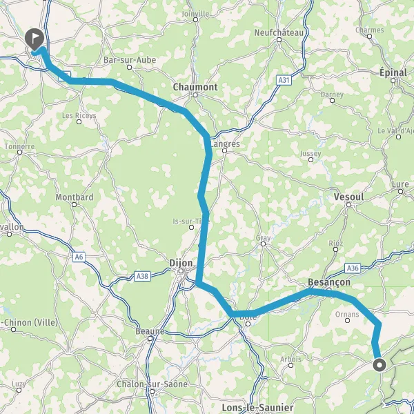 Prendre à droite et rejoindre D673 (Rue de Dole). Continuer sur 5,3 kilomètres