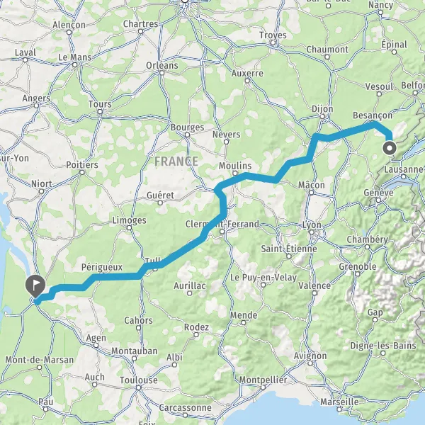 Prendre à droite et rejoindre A89 E70. Continuer sur 160 kilomètres