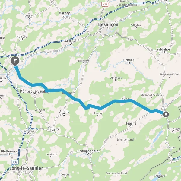Au rond-point, prendre la 2ème sortie sur Rue de Salins et continuer sur 210 mètres