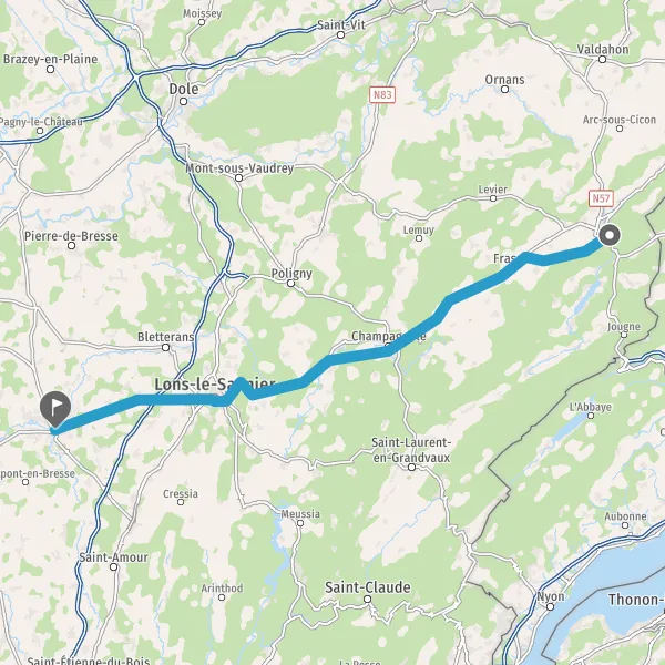 Au rond-point, prendre la 2ème sortie sur D471 (Route de Champagnole) et continuer sur 1 kilomètre