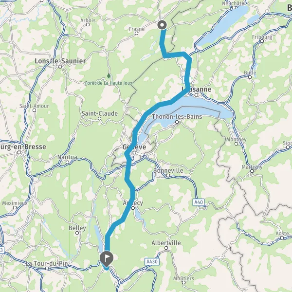 Prendre à droite et rejoindre E712 E70 (E70). Continuer sur 550 mètres