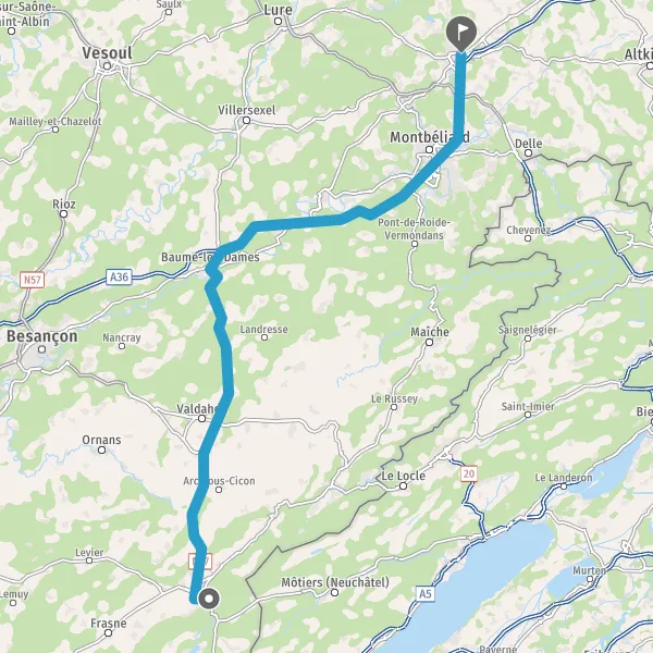 Continuer et rejoindre A36 E60. Continuer sur 54 kilomètres
