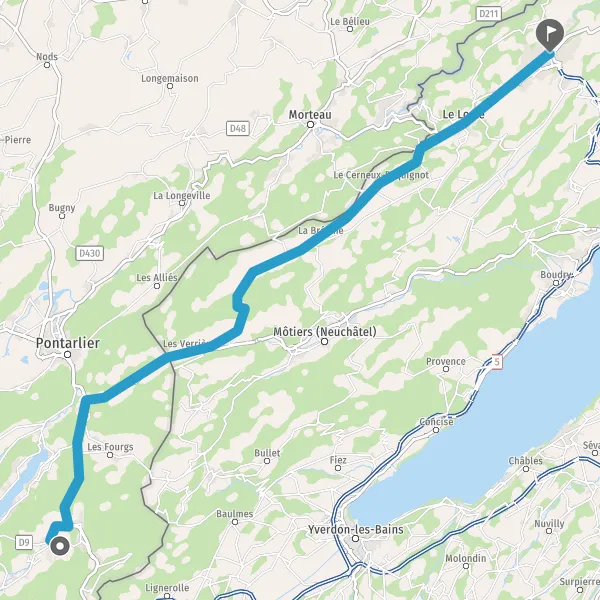 Au rond-point, prendre la 1ère sortie sur 10 (Rue Edouard-Dubied) et continuer sur 6 kilomètres