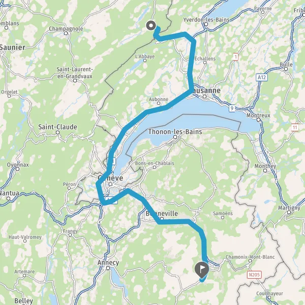 Au rond-point, prendre la 2ème sortie sur D1205 (Avenue de Genève) et continuer sur 850 mètres