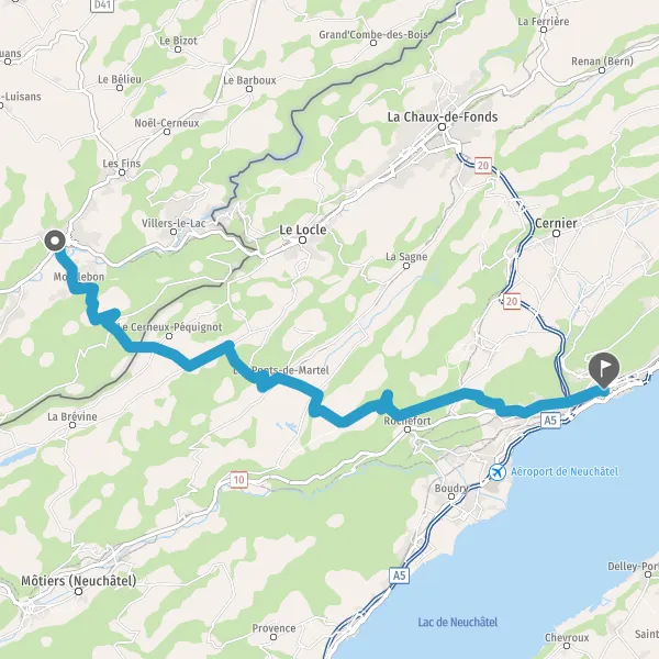 Au rond-point, prendre la 2ème sortie sur 10 (Rue de Neuchâtel) et continuer sur 20 mètres