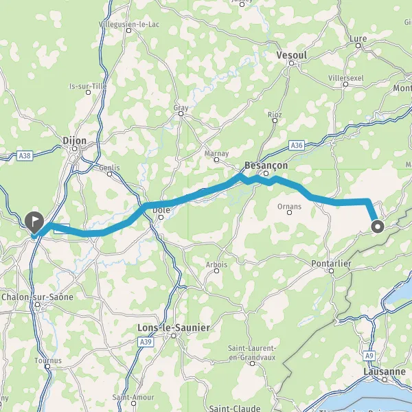Prendre à droite et rejoindre D673 (Rue de Dole). Continuer sur 5,3 kilomètres
