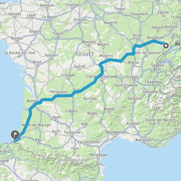 Prendre à droite et rejoindre A63 E5 E70. Continuer sur 170 kilomètres