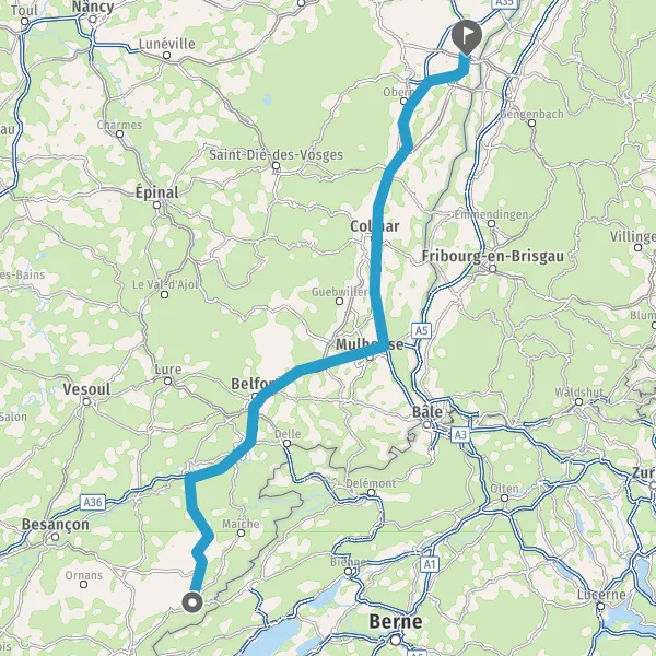 Prendre à droite et rejoindre A36. Continuer sur 45 kilomètres