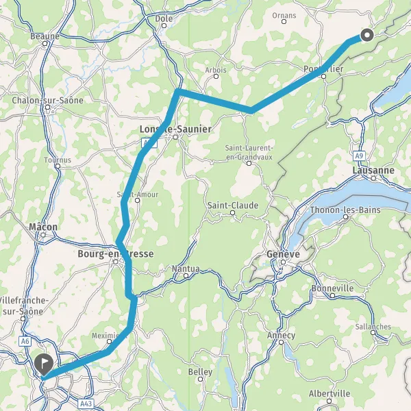 Prendre à gauche et rejoindre A39. Continuer sur 99 kilomètres