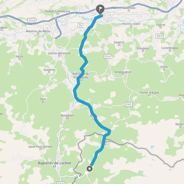 Tourner légèrement à droite sur D618 (Rue de Las Leres) et continuer sur 3,6 kilomètres