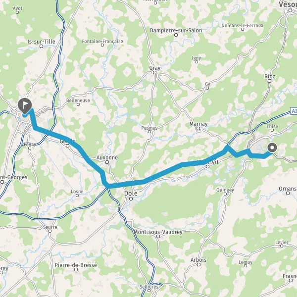 Prendre à droite et rejoindre D673 (Rue de Dole). Continuer sur 5,3 kilomètres