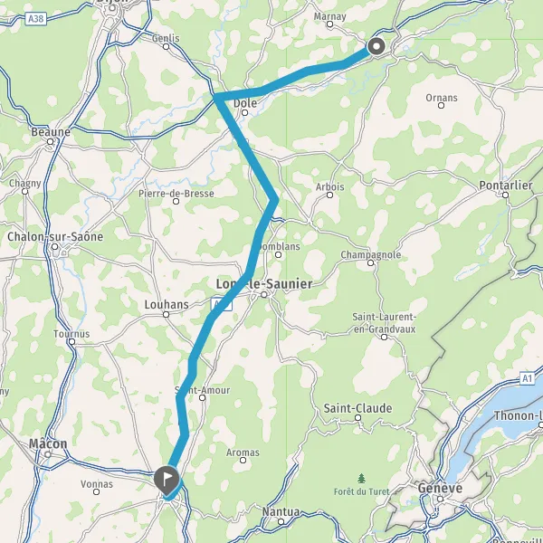 Prendre à gauche et rejoindre A39. Continuer sur 114 kilomètres