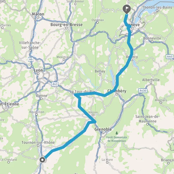 Prendre à droite et rejoindre A43 E70. Continuer sur 47 kilomètres