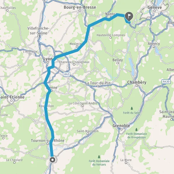 Prendre à droite et rejoindre A42. Continuer sur 4,3 kilomètres