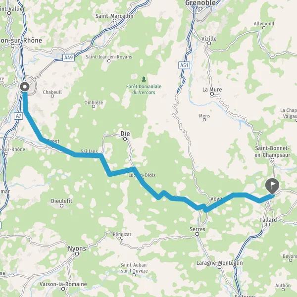 Tourner légèrement à droite sur D993 (Route de Die) et continuer sur 12 kilomètres