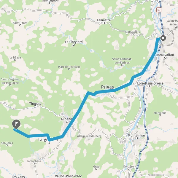 Tourner légèrement à droite sur D104 (Route de Privas) et continuer sur 6,1 kilomètres