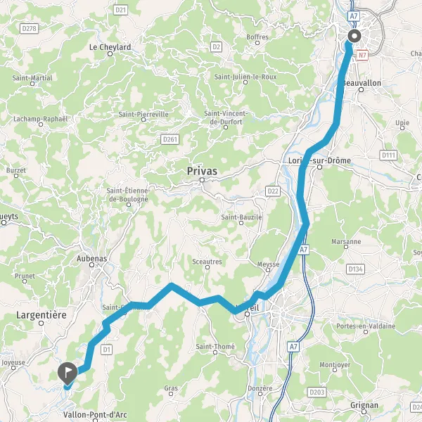 Au rond-point, prendre la 1ère sortie sur N102 (Route d'Aubenas) et continuer sur 8,3 kilomètres