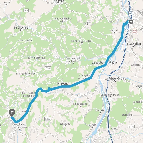 Tourner légèrement à droite sur D104 (Route de Privas) et continuer sur 6,1 kilomètres