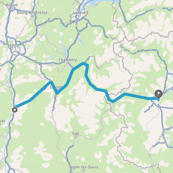 Prendre à droite et rejoindre A43 E70. Continuer sur 19 kilomètres