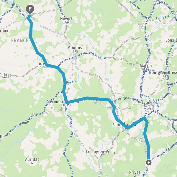 Prendre à droite et rejoindre A72. Continuer sur 53 kilomètres