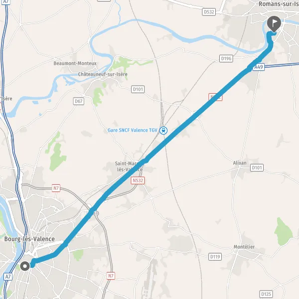 Bourg-de-PéageRomansGare T.G.V.Rovaltain