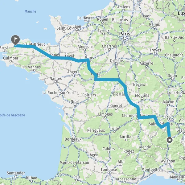 Prendre à droite et rejoindre A85 E604. Continuer sur 105 kilomètres