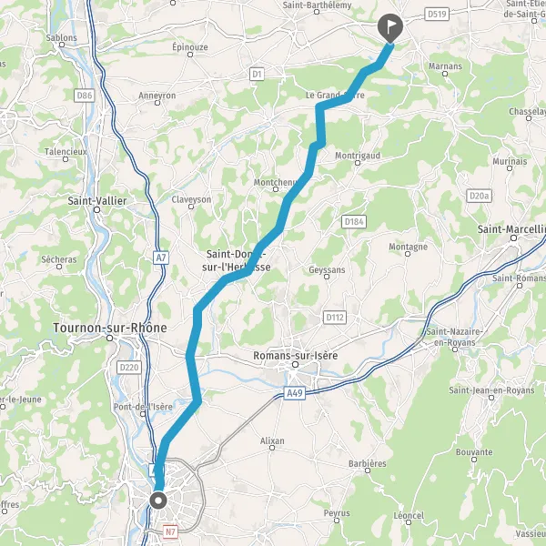 Au rond-point, prendre la 1ère sortie sur D67 (Route de Châteauneuf-sur-Isère) et continuer sur 75 mètres