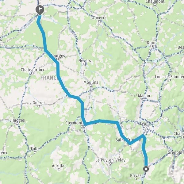 Prendre à droite et rejoindre A72. Continuer sur 53 kilomètres