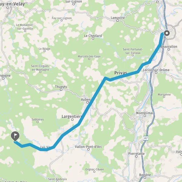 Tourner légèrement à droite sur D104 (Route de Privas) et continuer sur 6,1 kilomètres