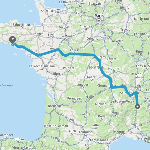 Prendre à droite et rejoindre A85 E604. Continuer sur 205 kilomètres