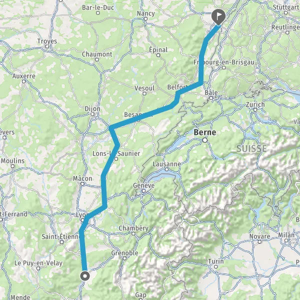 Prendre à droite et rejoindre A36 E60. Continuer sur 185 kilomètres
