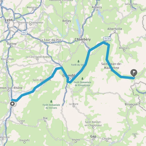 Prendre à droite et rejoindre A43 E70. Continuer sur 19 kilomètres