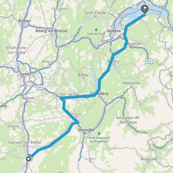 Prendre à droite et rejoindre A43 E70. Continuer sur 47 kilomètres