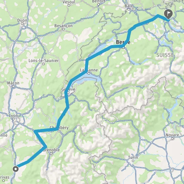 Prendre à droite et rejoindre A43 E70. Continuer sur 47 kilomètres