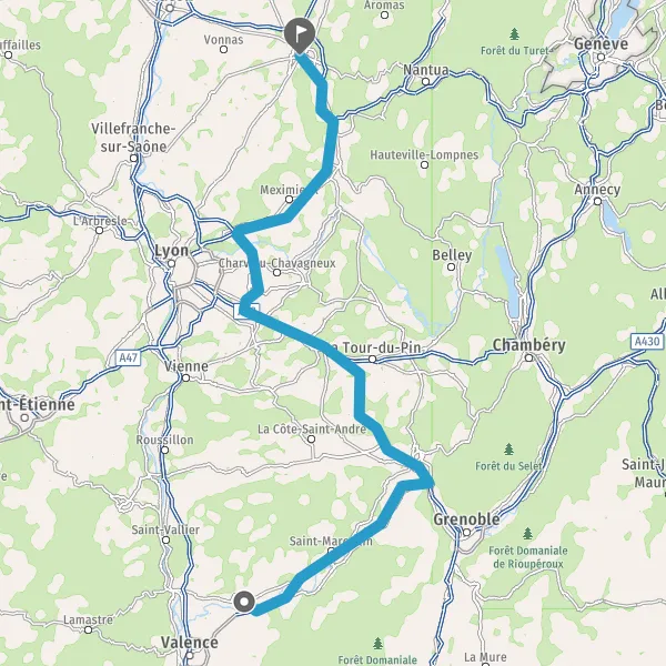 Prendre à droite et rejoindre A43 E711 E70. Continuer sur 26 kilomètres