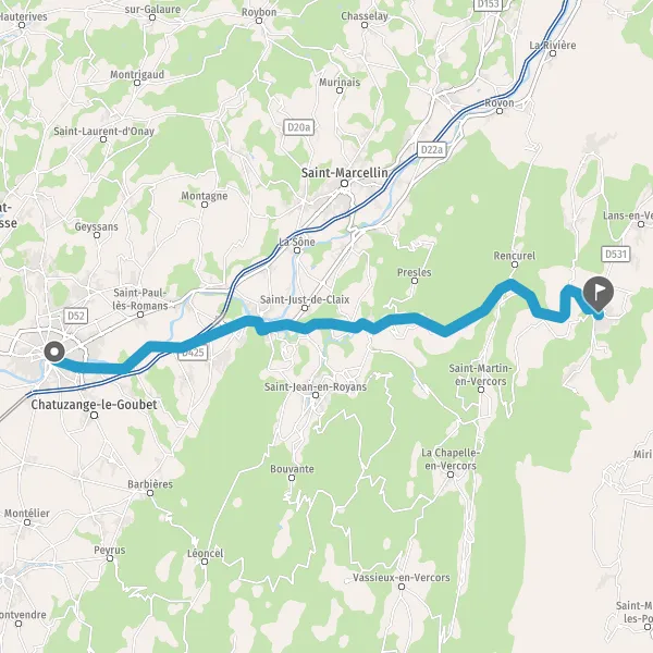 Tourner légèrement à droite sur D531 (Route de Villard-de-Lans) et continuer sur 15 kilomètres
