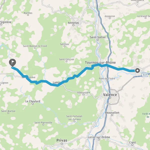 Tourner légèrement à droite sur D534 (Route de Lamastre) et continuer sur 6,1 kilomètres