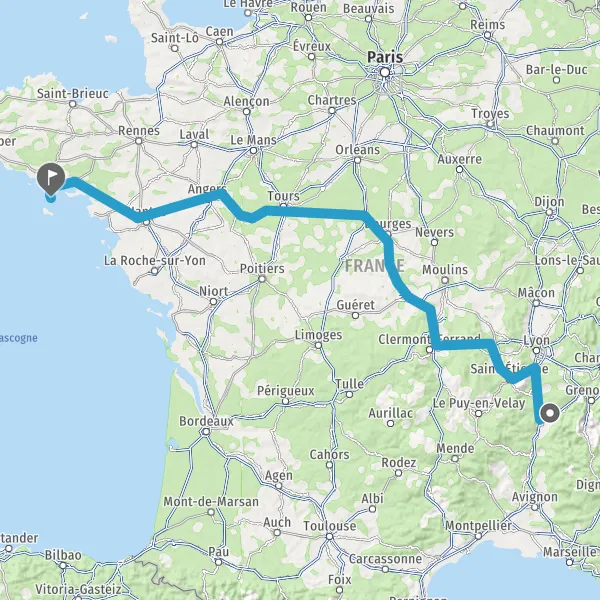 Prendre à droite et rejoindre A85 E604. Continuer sur 205 kilomètres