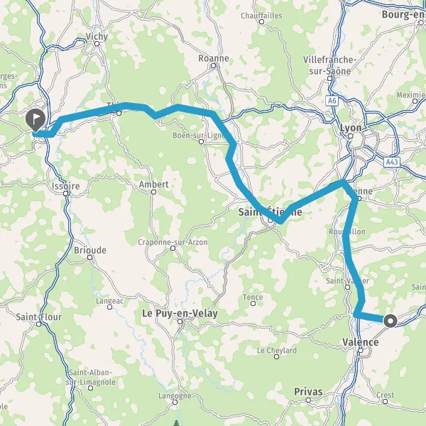 Prendre à droite et rejoindre A72. Continuer sur 53 kilomètres