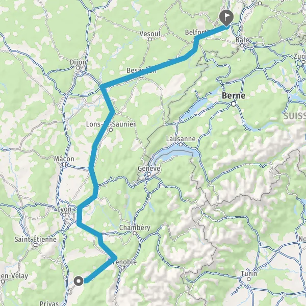 Prendre à droite et rejoindre A36 E60. Continuer sur 135 kilomètres