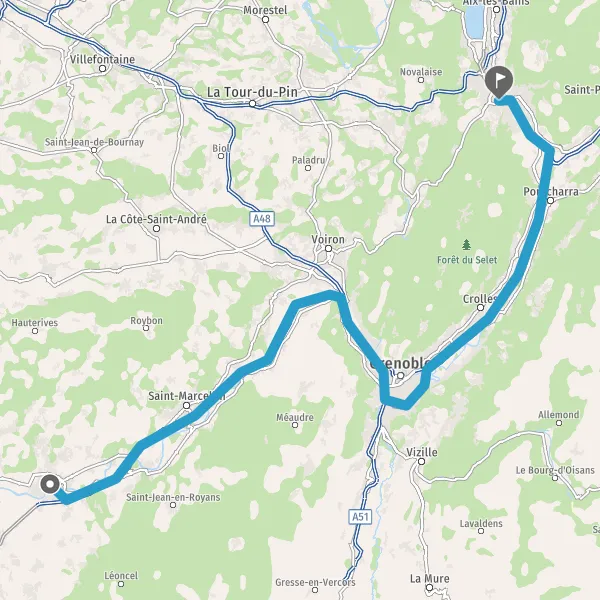 Prendre à gauche et rejoindre A48. Continuer sur 10 kilomètres